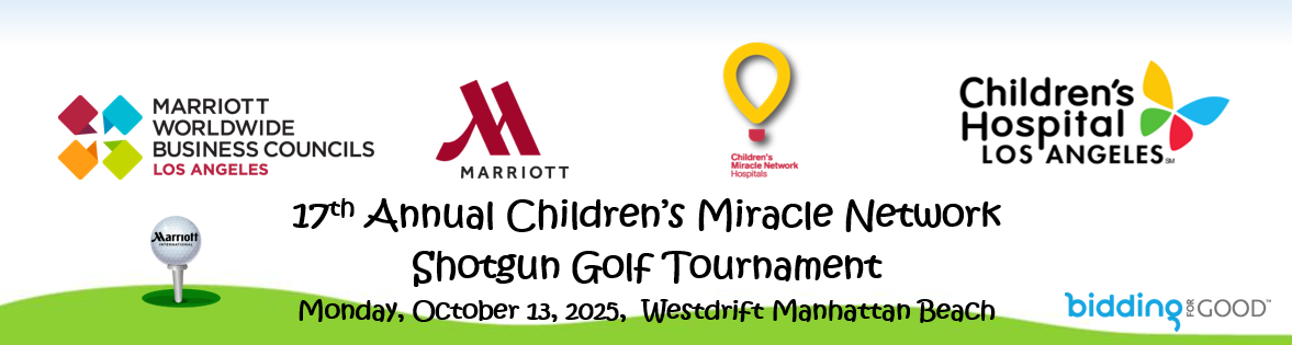 The Los Angeles Marriott Business Council is pleased to announce the return of the Annual Children’s Miracle Network Shotgun Golf Tournament! Join us on Monday, October 13, 2025, for our 17th tournament; at the 26-acre Westdrift Manhattan Beach, Autograph Collection hotel where we will set the stage for this momentous occasion on their 9-hole, 3-par golf course.